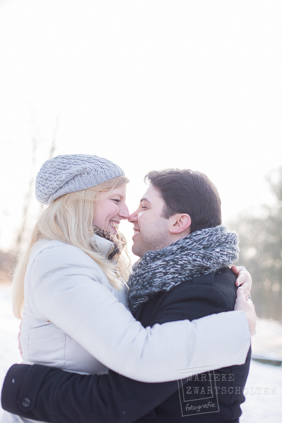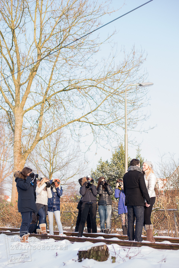 Ik heb een workshop gevolgd bij Florence, waarbij ze veel informatie en ervaringen heeft gedeeld (maar er valt nog heel veel meer over te leren), het ons kort heeft laten ervaren en waarbij we het tenslotte mochten ‘uitproberen’ op een stel. Dit waren Suzanne en Daniel, die het geen probleem vonden om in de sneeuw voor ons te ‘poseren’.
